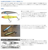 従来のチニング用プラグとは一線を画す、大型サイズのチニング専用ペンシルベイト。広大な河口域では、広範囲をカバーできる飛距離と水押しによるアピール力が重要。荒れた状況でも、快適にキャストできる自重と安定したアクションを実現するウエイトバランスで従来サイズのプラグでは攻略できなかった状況でも快適に釣りをすることが可能となった。